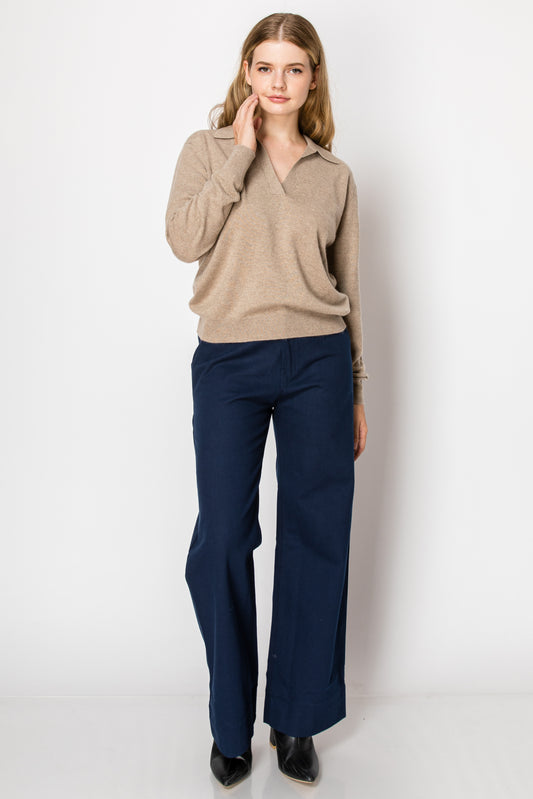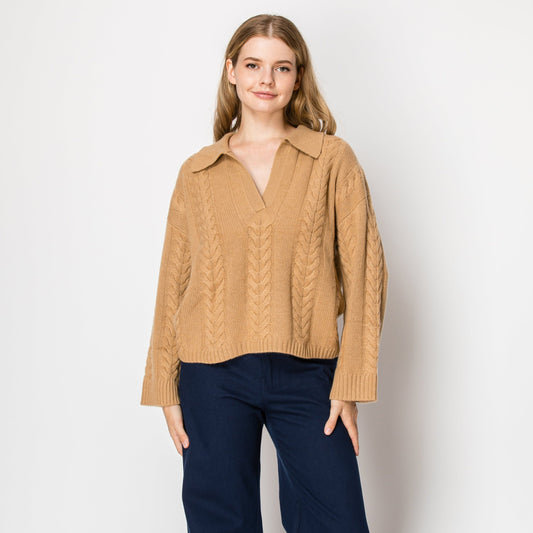 Dean Cashmere Cable Knit Polo Pullover In Sand