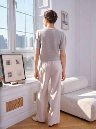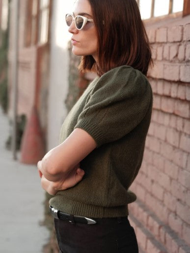 Aria Short Sleeve Cashmere Sweater In Bay Leaf