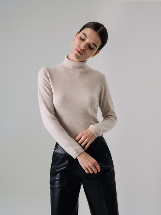 Susanna Cashmere Turtleneck Pullover In Oatmeal