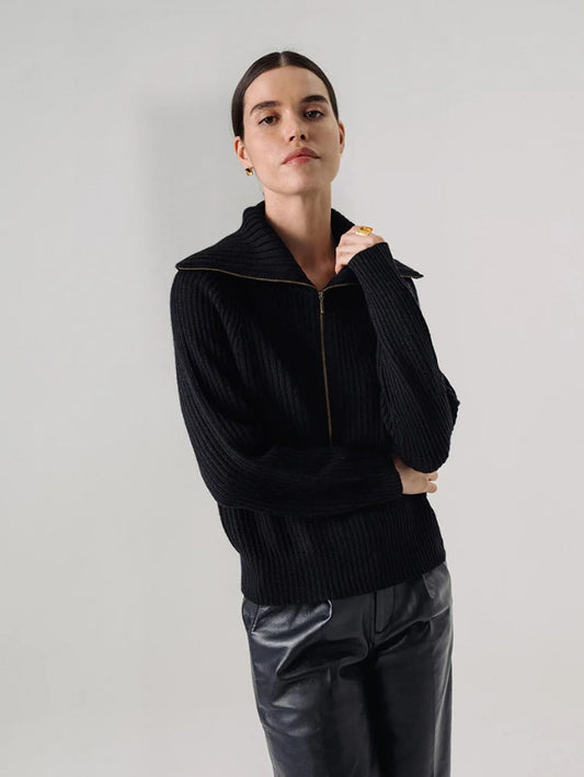 Tori Fisherman Half Zip Up Cashmere Pullover In Black