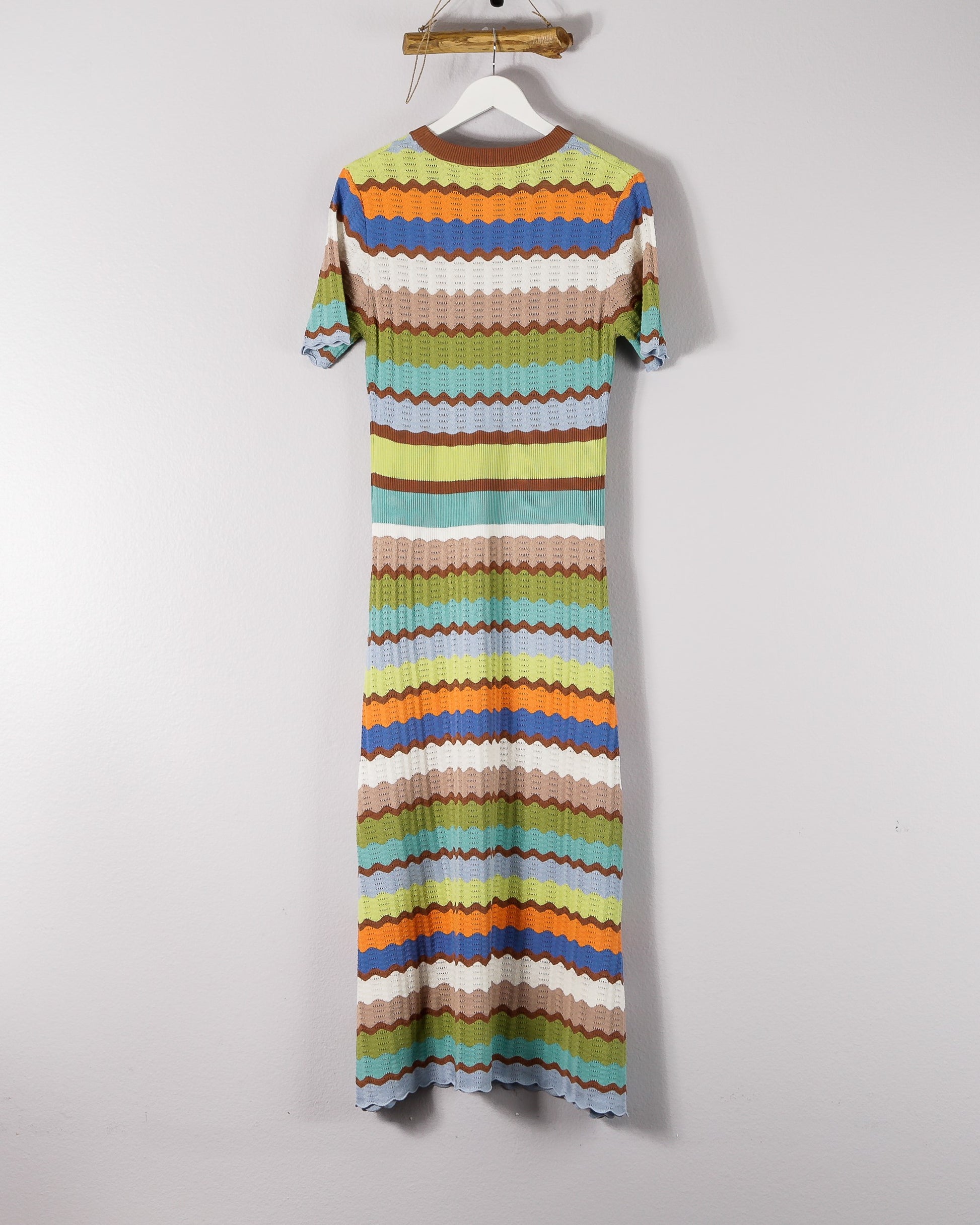 Eyelet Crochet Midi Dress In Multicolor Wave knit